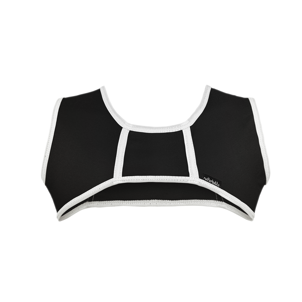 OBSIDIAN BLACK Fabric Harness, release your chest and show it with style! made of 92% polyester and 8% elastane. The fabric have a peachy feel in the skin and breathable enough, that you won’t believe is not cotton.